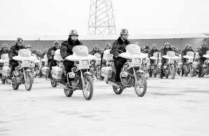 鹿邑县城区巡防大队由面向社会择优招聘的500名年轻人组成,他们日常实行军事化管理,分包路段昼夜巡逻,有效预防了治安事件和刑事案件的发生,群众安全指数大幅度提升。