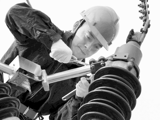 为让全县人民温暖亮堂过冬,商水县电业局全面开展度冬保电工作,加大对输、变电设备及线路的检修维护力度,确保电网安全稳定运行。图为12月15日该局检修人员在35千伏赵桥变电站检修设备。 杜放光 赵丽娜 摄