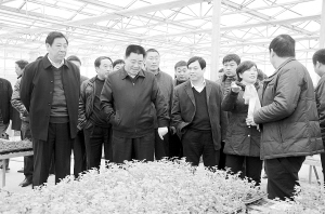 县党政考察团在长垣考察新型农村社区建设。(张振 摄)