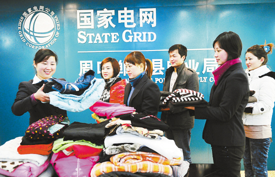12月14日,郸城县电业局职工向贫困山区儿童捐献过冬衣物。据悉,所有捐献衣物将在整理后统一邮寄到云南、青海等少数民族的贫困儿童手中。(刘兴刚 摄)