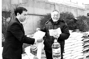 昨日,我市对中心城区低保户价格补贴品发放仪式在五一广场举行。今年市政府拿出价格调节基金180万元用于市区低保户价格补贴品的发放,市区内所有城市低保户都可以领到价值160元的价格补贴品。 (记者 王映 摄)