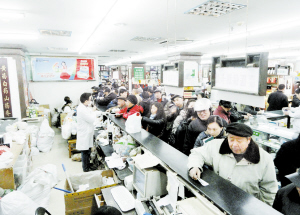 12月22日,在一家药店内,市民排队购买冬季进补类中草药。当日是冬至,天越不越冷,冬令进补是我国民间传统的养生方法,各地群众纷纷在冬至这天到中药店购买进补的中草药,用于家庭滋补。(新华社发 )