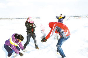 12月22日,哈尔滨医科大学的几名学生在松花江冰面上戏雪。当日,哈尔滨在冬至这一天迎来今冬第一场明显降雪,为当地群众过冬至、迎“双节”营造浓浓的节日氛围。