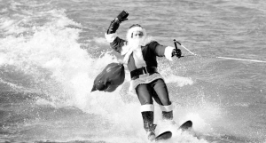 12月24日,在美国首都华盛顿附近的国家港口,“圣诞老人”踩在滑水板上从波托马克河上朝观众挥手致意。(本栏图文均据新华社电)