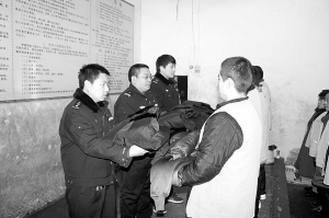 本报讯 近日,10多名狱警抱着厚厚的棉袄、棉裤、棉被、棉鞋,依据特困在押人员名单逐一发放。