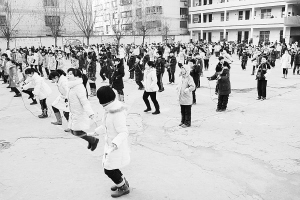 为增强青少年体质,确保在校学生“每天锻炼一小时”,周口六一路小学开展了“大课间活动”。各年级根据学生的年龄特点,分别在大课间开展了跳绳、踢毽子、篮球,武术基本功等不同活动。(白亚军 摄)