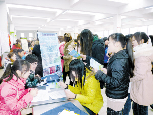 ▲12月26日,周口幼师举办2012届毕业生就业洽谈会。来自北京、广州等地的266家用人单位,为毕业生提供了1800多个就业岗位,充分满足了毕业生就业需求。图为洽谈会现场。(胡银堂 梁永亮 摄)