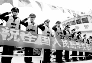 迎接新年 2011年12月31日,福建海警一支队官兵在驻地巡逻艇上举行迎新年活动。