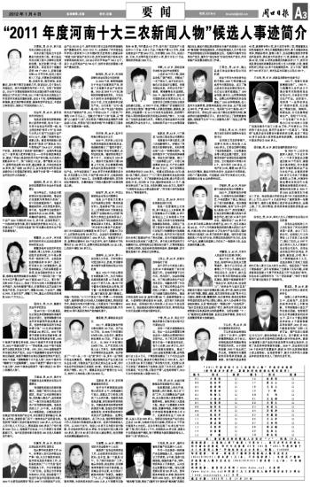 “2011年度河南十大三农新闻人物”候选人事迹简介