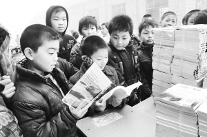昨日,搬口办事处文庄小学的学生们正在翻阅着爱心团体送来的图书。该小学的学生大多是留守儿童,虽然父母不在身边,但社会团体、爱心企业的不断关爱使他们一直感受着大家庭的温暖。(记者 王映 摄)