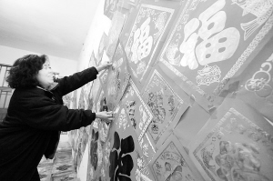 | 小小“福”字赚千万 1月4日,山东青岛即墨市蓝村镇肖家泊子村一名村民在张贴“福”帖样品。春节临近,肖家泊子村制作的“福”帖热销。该村有140多户农民从事“福”帖生产,产品种类达600余个,远销吉林、河南、河北及江浙等地,年利润过千万元。 |