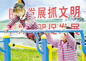 太康县独堂乡轩庄行政村两名孩子在村头健身器材上玩耍。该县深入开展文明户、文明村、文明集市、文明村镇等群众性创建活动,农村精神文明建设工作取得了实效。(记者 沈湛 摄)