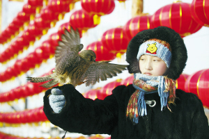 吉林“鹰屯”举行第二届鹰猎文化节 1月9日,吉林市一名小朋友在展示猎鹰。当日,有“鹰屯”之称的吉林省吉林市昌邑区土城子满族朝鲜族乡渔楼村第二届鹰猎文化节开幕。40多名当地俗称“鹰把式”的驯鹰人进行了驯鹰、撒鹰捕猎等项目的表演,让游客们近距离感受神秘的鹰猎文化。 新华社发