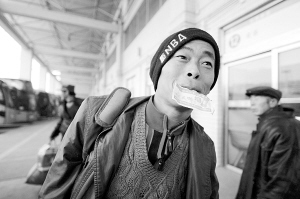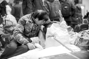 1月13日,一名旅客在江苏扬州汽车西站候车大厅候车。
