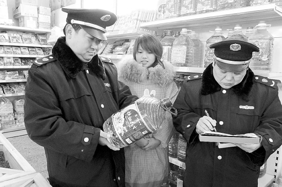 近日,西华县工商局对“五个周边”市场开展为期一个月的专项整治行动,严查“三无”、过期、商标侵权、虚假宣传等违法违规经营行为。图为1月12日,该局执法人员在一学校周边超市检查时的情景。 记者 张猛 通讯员 陶中海 摄