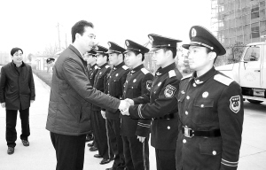 朱良才代表县委、县政府向广大官兵致以节日的问候。朱良才说,在过去的2011年,广大消防官兵和武警指战员以昂扬的斗志、优良的传统和过硬的作风,承担着各种抢险救灾和安全保卫任务,为和谐鹿邑建设做出了积极的贡献。特别是夏季麦茬防火工作中,广大官兵更是发扬能吃苦、能战斗、能奉献的优良传统,发挥了重要作用。希望大家在新的一年里,进一步提高政治素质和军事素质,增强履职能力,坚决完成党和人民赋予的各项任务,为保障人民群众安居乐业,维护社会和谐稳定再立新功。
