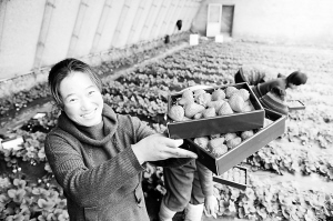 东港农民收获反季节草莓 1月17日,东港市椅圈镇农民在大棚里采摘草莓。辽宁省东港市椅圈镇是我国北方冬季反季节草莓的主要供应基地之一,有草莓生产面积2万亩,年产值约2亿元。近年来,椅圈镇依托日光温室和防治病虫害技术,大力发展种植反季节草莓,产品销路好,利润高,不仅盘活当地经济,还大幅增加了农民收入。