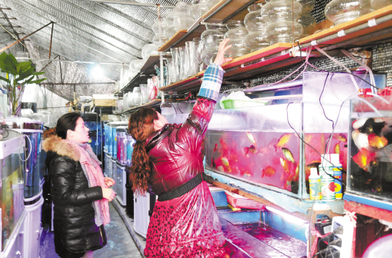 “年年有鱼(余)”。为了讨个开门彩,许多市民选择新春期间购买几只观赏鱼来点缀一下家居生活。 (记者 沈湛 摄)