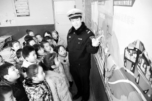 开学第一课 交通安全进课堂 2月7日,河北邢台育才小学学生在课堂上听交警讲交通安全知识。当日是河北邢台中小学春季开学第一天。新华社发