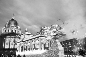 彩灯点亮旧金山元宵节 2月6日,“祥龙献瑞”龙舟彩灯在美国旧金山市政广场点亮。当天是中国农历元宵节,旧金山市政广场举行亮灯仪式,为当地增添不少喜庆气氛。新华社发