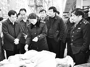 图为县长刘广明在集贸市场了解食品安全情况。春节期间,刘广明带领工商、卫生等相关部门人员深入集贸市场,了解食品安全情况。刘广明要求各有关部门时刻紧绷食品安全弦,把紧食品安全关,筑牢食品安全防线,确保全县人民用上安全、放心食品,过一个快乐、祥和、安全的春节。