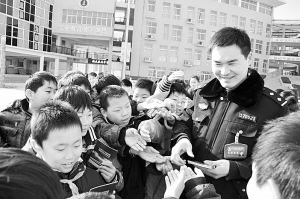 2月7日,市公安局文昌派出所交管巡防大队民警深入校园向孩子们发放《学生交通安全宣传手册》。当日,是周口市第一实验小学新年开学第一天。为切实提高广大中小学生交通安全和自我保护意识,预防和减少道路交通事故的发生,当天上午,市公安局文昌派出所交管巡防大队组织民警深入校园开展“进学校、送安全”活动,用通俗易懂的语言和真实的交通事故案例,教育孩子们如何安全出行。