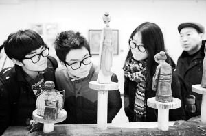 2月8日,观众参观工艺设计作品《爱情买卖》。当日,全国第三届大学生艺术展演活动优秀艺术作品展在杭州中国美术学院美术馆开幕。展览展出来自全国各地高校学生共200余件优秀艺术作品,涵盖了绘画、书法、篆刻、摄影、工业设计、DV作品等多种艺术形式。本次展览将持续至本月13日。 新华社记者 鞠焕宗 摄