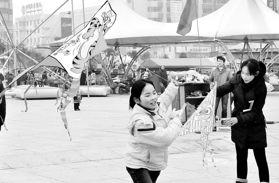 上周末,许多孩子在市区五一广场上放风筝。五颜六色的风筝和孩子们嬉戏的身影交织在一起,构成一幅幅温馨的画面。记者 王映 摄