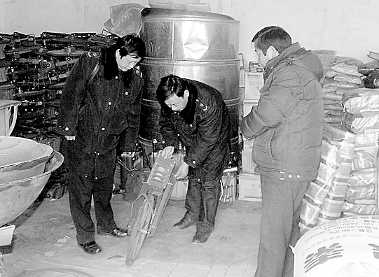 春耕时节,商水县工商局练集工商所按照中原红盾行动“五个周边”市场专项整治要求,加大对农资市场的监管力度,确保农资消费安全。图为该所执法人员在辖区一经营门店检查农机具时的情形。(苑国政 摄)