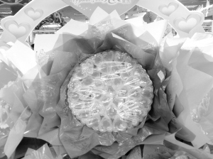 蒹葭:超市巧克力柜台装扮一新,各种口味和包装的巧克力琳琅满目,促销活动各式各样,众多情侣纷纷驻足选购。情人节的创意也随处可见,花朵的包装也非常应景,做成鲜花的样式,里面巧妙摆满了可爱的小熊,看上去可爱和温馨,成为情人节送礼的热门之选。