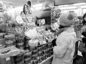 情人节到了,超市各种口味和包装的巧克力琳琅满目。(孙艳艳 摄)