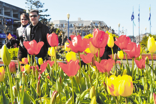 郁金香装点美国旧金山渔人码头 2月19日,在美国旧金山渔人码头,游客观赏盛开的郁金香。旧金山渔人码头于2月18日至26日举办郁金香节。 新华社发