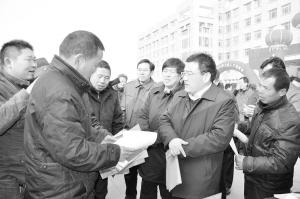 为落实市委经济工作会议精神,川汇区采取一系列措施解决区属企业用工、用地及资金问题,确保企业健康发展。图为在企业招工现场,区委书记孙敬林、区长郭志刚与农民工亲切交流。