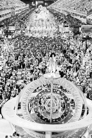2月20日,Ilha桑巴学校的演员在巴西里约热内卢桑巴大道上表演。当日,里约热内卢狂欢节特级组桑巴巡游表演进入第二天。各家桑巴学校以彩车、桑巴女王和盛装方阵登场,在镜像对称的桑巴大道上制造出梦幻景观。新华社记者 翁忻旸 摄
