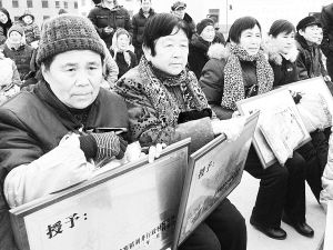 近日,受到表彰的好媳妇、好婆婆领到奖牌。当日,商水县黄寨镇刘井村召开2011年表彰大会,好媳妇、好婆婆等49名先进个人受到表彰,有效倡导了孝老爱亲、邻里团结的社会风尚。(岳建辉 摄)