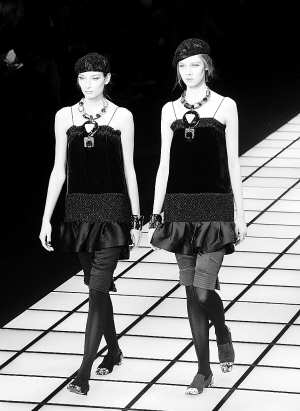 2月25日,在意大利米兰秋冬女装时装周上,模特展示意大利高级时装品牌Emporio Armani服饰。Emporio Armani是阿玛尼以年轻人为主的副线品牌。 新华社 发