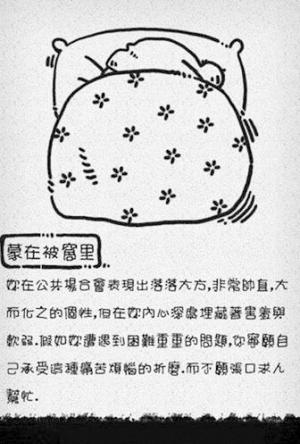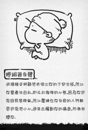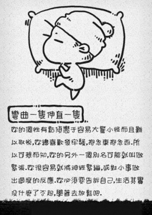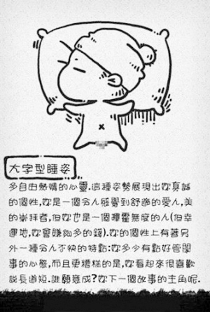 这种睡姿明显地表现出你的不安全感,你非常容易发脾气,所以围绕在你身旁的人们都要非常的小心。