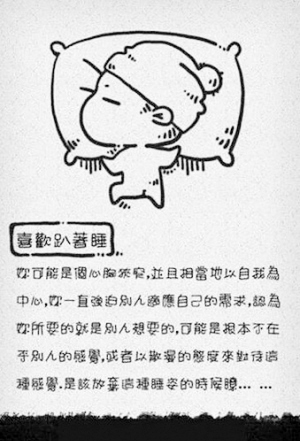 假如你是一整晚趴着睡,你可能是个心胸狭窄,并且相当地以自我为中心。