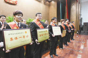 1月29日,从郑州传来喜讯,西华法院被省高级人民法院记“集体一等功”,这也是该院继2009年度荣获“全省优秀基层法院”、2010年度“集体二等功”之后获得的又一殊荣,实现了一年一个样、三年大变样的争创目标。