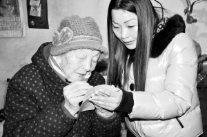 2月28日,在七一办第二选区,工作人员带着流动票箱走进群众家中,让群众行使自己的公民权利。图为80岁的金拐杖工程帮扶老人任红莲在填写选票。