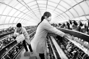 昨日,两名养殖人员喜收鸡蛋。近年来,商水县固墙镇充分利用当地资源优势,大力发展畜牧业,依靠科技进步打造畜牧品牌,实现了由数量型向质量型转变,由分散经营向集约化、规模化经营转变,取得了良好的社会效益和经济效益。(记者 沈湛 摄)