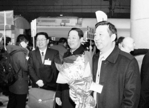 政协委员抵京 3月1日,来自河南省的全国政协委员抵京参加全国政协十一届五次会议。这是全国政协委员王超斌(右一)等抵达北京西站。 新华社发