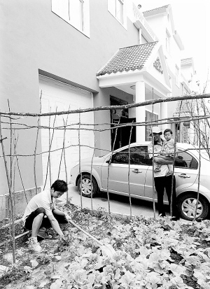 在河南省栾川县赤土店镇的一个农村社区,村民在住宅楼前整理菜地(2011年6月20日摄)。据河南省统计局公布的数据显示,2011年河南省农村居民人均纯收入6604.03元,扣除价格因素,比上年实际增长12.7%,高于城镇4.3个百分点。这是继2010年后,河南农民人均纯收入增长速度再次超过城镇居民人均可支配收入。 新华社发