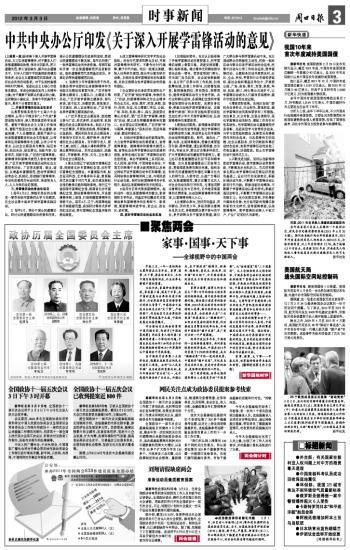 中共中央办公厅印发《关于深入开展学雷锋活动的意见》