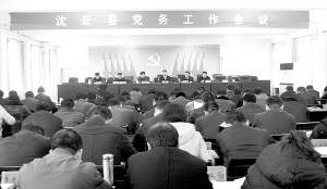 本报讯 (记者 韦伟 通讯员 迟驰 程健 文/图)3月3日上午,沈丘县委召开党务工作会议,会议分别对统战工作、组织工作及宣传工作进行了回顾总结,传达了上级有关会议精神,并对2012的工作进行具体部署。县领导杨永志、李子顺、殷晓春、朱在红、何明照、杨所超、蒋忠平出席会议,各乡镇、县直单位负责人参加了会议。