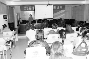 ②在“三八”妇女节到来之际,项城市电业局工会开办了关爱女职工健康知识讲座活动,该局80多名女职工参加听讲。麻争光 摄