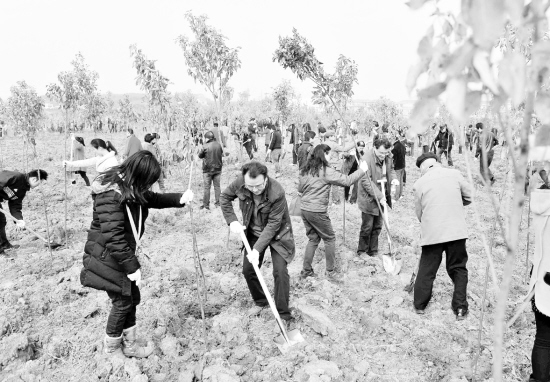 参与植树造林 共享生态文明 3月12日,湖北省各社会团体在武汉庙岭造林区植树。当日是我国第三十四个植树节,又一个植树造林的黄金季节如期而至。在这个播种绿色和希望的春天,人们纷纷走出家门参与植树造林活动,为建设绿色家园和生态文明贡献力量。 新华社记者 肖艺九 摄