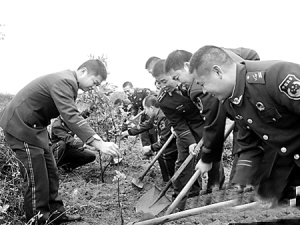 3月12日,在第34个植树节到来之际,广西公安边防总队海警第一支队的官兵们来到辖区郊野、驻地海岛,开展“我为驻地添新绿”义务植树活动。(据新华社)