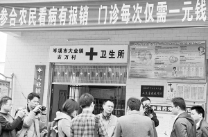 广西农村现“一元看病” 3月15日,广西梧州岑溪市大业镇古万村村卫生所悬挂起门诊仅需一元钱的横幅。广西梧州岑溪市自去年12月1日起推行乡村医疗一体化试点工作,参加新农合的农民在卫生所看病每人每年可在村卫生所享受就诊5次、每次一元钱的诊疗服务。目前,岑溪市已在全市14个乡镇选取50个村卫生所开展试点工作,计划年底推广到全市100个村卫生所。