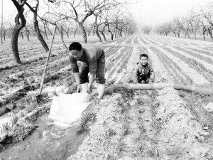 图①3月17日,河南省内黄县后河镇桑村农民在枣林间浇灌田地。随着气温逐渐升高,豫北各地农民展开以浇水、施肥、除草为重点的冬小麦春季田间管理,农田里到处一派繁忙的景象。新华社发